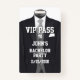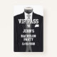 Fun bachelor party accessory badge with graphics of a formal tuxedo. Personalize the white text fields to suit your needs.