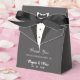 Elegant wedding favor boxes in tuxedo design in grey & black.