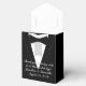 Tuxedo Black Bowtie Tent Style Favor Box with Ribbon (Black). Black tie/ tuxedo gift bag with fully customizable texts "Thank you for being with us on this special day! Jonathan & Samantha August 21, 2018". These stylish bowtie tuxedo party gift bags are fully customizable, add your personal texts and images! Stylish personalized bags for wedding parties, anniversaries and receptions, holiday or New Year party or other special festive events!