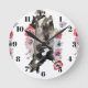Tuxedo Cat Cats Art Animal Childs Pink Round Clock
