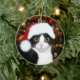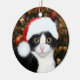 Black and white tuxedo cat with a Santa hat and a Christmas tree in the background cute cat lovers holiday ornament