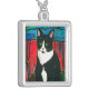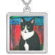 Tuxedo Cat cute kitty unique stained glass style Silver Plated Necklace