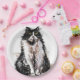 Tuxedo cat drawing Birthday Party Paper Plate. Designed from my original drawing.