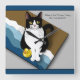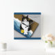 Tuxedo Cat Funny Bathroom Privacy Blue Square Wall Clock