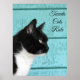 Tuxedo Cat Profile on Teal Poster