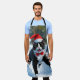 Tuxedo Cat Running in Snow with Christmas Hat Apron