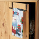 Tuxedo Cat Running in Snow with Christmas Hat Kitchen Towel