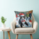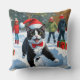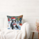 Tuxedo Cat Running in Snow with Christmas Hat Throw Pillow