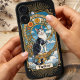 Cat Tarot card with your personalized text. Gray Tuxedo cat in Art Nouveau style, depicting Wheel of Fortune Tarot card. Cute gift for cat lovers and Tarot readers and enthusiasts. Vintage phone case for occult enthusiasts and spiritual seekers.