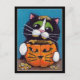 Tuxedo Cat with Halloween Pumpkin Postcard