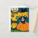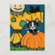 Tuxedo Cat with Pumpkin and Scarecrow Illustration Postcard