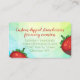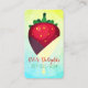 Tuxedo or dark and white chocolate covered strawberry fruit on this dessert, confections, or sweets business card featuring an abstract faceted background in soft pastel tones.