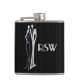Part of our Tuxedo Wedding Collection: Flask featuring a silvery Art Deco style design of an elegant couple in formal attire on a black pinstriped background + custom text fields for monogram, date and a personal message. Great gift for your wedding party! #zazzlemade