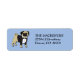 This fun return address label shows a cute image of a little brown pug wearing a tuxedo jacket. The image is placed on a gray blue background. Your text is in black at the right of the image. *Design credit for the image to Winchester Lambourne on etsy.com.