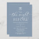 Modern Romantic Calligraphy, dusty blue Scheme, mistletoe with wedding bells, Wedding Rehearsal Dinner invitation card ('twas the night before). It is perfect for your wedding rehearsal dinner celebration party, before your best day. Add your details in matching black font / lettering.