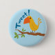 Illustration of a yellow bird on a branch, saying Tweet! Orange beak, black eyes. Branch is brown and green. Background is sky-blue, text is darker blue.