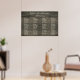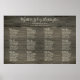 Dark wood grain background, wedding seating chart poster. List seating for up to twelve tables, with eight (or fewer) guests at each. This 23 x 36 inch seating chart has off-white text in both script (for numbers) and printed fonts for guests' names. Bride and groom names at top in elegant and modern, hand-written font with one or two lines for date and location of celebration Tables are listed horizontally, but that is easy to change by changing the numbers using the templates. For fewer tables, simply delete sections as needed, keeping the look symmetrical. Upgrade the paper if you wish.