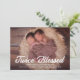 Twins baby birth announcement in neutral colors to introduce your darling newborn twins to friends and family. Twice Blessed is written in a charming marker script. The back features a mint green fern pattern.