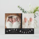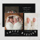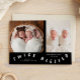 Whimsical birth announcement card featuring typography text that says "twice blessed" at the bottom with two photos on the front. You can add a 3rd picture on the back along with the birth stats and message. The background is black.
