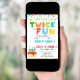 Plain white envelopes are included with paper invitations and will come to fit the invitation size you select. If you don’t need the envelopes, you may choose to not receive them by selecting the dropdown below "Envelopes" and choosing "None." If you’d like to have a design on your envelopes, you can browse all of these available envelopes to find the design that complements your Twice The Fun Joint Birthday Card.