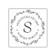 This stamp features a rustic botanical twig wreath with a monogram initial, and framed by two custom text areas.