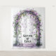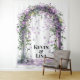 Step into a dreamscape where romance meets elegance. This customizable wedding backdrop showcases a stone archway entwined with lush greenery and vibrant purple florals, radiating a sense of timeless beauty. Suspended fairy lights lend a soft, magical glow—perfect for setting a whimsical tone during vows or photo moments. Personalize it with your own names or meaningful message to make your celebration uniquely yours. Ideal for ceremonies, receptions, or statement-making photo ops.
