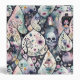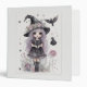 A witch girl surrounded by delicate flowers and stars highlighting her magical presence in a dreamy garden and an enchanting and mysterious design, where small fairy-tale figures, ghosts and flowers meet in a dreamlike landscape with a dark background. The design features subtle Halloween elements such as a skull and witch's hat, all framed in soft pastel colors that strike a nice balance between the spooky and the sweet. Ideal for those seeking a magical and artistic interpretation of Halloween.
