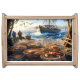 Twilight Harvest Fishermen Collecting Crabs Serving Tray