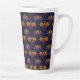 The product features a repeating ornate pattern inspired by a classic, baroque-style design. The central motif resembles a stylized fleur-de-lis or an elegant plume, rendered in vibrant gold, red, and orange hues with gradient effects. The background is a deep navy blue, creating a rich contrast that makes the design elements pop. The pattern has a luxurious and regal feel, with symmetrical detailing and flowing curves that give it a sophisticated and timeless appearance.