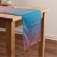 This table runner feels like the quiet bridge of a twilight song. Cool evening blue blends into soft violet and warm crimson, creating a flowing gradient that mirrors the colors of the sky as the day fades and the evening melody begins. The design moves across the table like a slow musical passage, calm, atmospheric, and full of gentle rhythm.