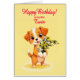 A cute birthday card for a twin. A cuddly puppy holding a bunch of flowers and saying 'Happy Birthday'. Celebrate a birthday with this irresistible card showcasing a sweet puppy holding a bunch of daisy flowers, perfect for melting hearts.