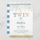 Twin Blue Gold Glitter Simple Baby Boy Shower Invitation