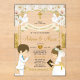 Twin Boy & Girl White Flower First Holy Communion Gold Glitter Acrylic Invitation