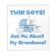 Proud new grandmas of twin baby boys will love this cute blue design featuring two bunnies in a blue bassinet and blue text that reads "Ask Me About My Grandsons!"