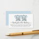 Cute twin boys baby shower books for baby enclosure card with "books for the babies" in a stylish soft grey script with swashes and pastel blue watercolors of twin baby boy elephants. Personalize your books for baby request.