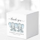 Cute favor gift boxes for your twin boys baby shower with "thank you" and "Two Sweet Little Peanuts Are On Their Way" written in soft grey typography and a stylish script with swashes and blue watercolors of baby elephants. Personalize the mother-to-be's name and shower date in simple grey typography.