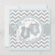 Grey and white chevron print with baby blue contrast and animal print jumpers with ties on clothesline and 3D-look bow and ribbon twin boys thank you card.