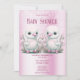 Twin Ducks Pink Floral Baby Shower Invitation