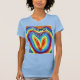 Women's T-shirt with design showing the twin flame wrapped in rainbow colors with the inscription using the Cherokee syllabus.