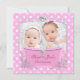 Twin Girls Pink Polka Dot Baby Girl Christening Baptism Silver White Floral Metal Pretty Classy Template