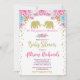 Twin girls baby shower elephants pink gold invitation