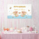 Dive into the magic with this enchanting birthday banner featuring two adorable fairy mermaids holding a cute shell. The design also showcases a jellyfish shaped as a magical mushroom house, surrounded by starfish, butterflies, and beautiful florals, all in a whimsical watercolor style. Perfect for a magical fairy mermaid twins girl birthday party, this invitation will bring a touch of underwater enchantment to your special celebration.