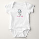 Cute twin themed white baby girl's one piece romper, with cartoon graphics of a kitty cat and custom text reading Twins, I'm the girl. Matching dog boy twin bodysuit is available.