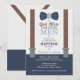 Twin Little Men Baptism Invitation, Blue, Brown Invitation