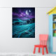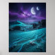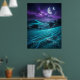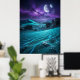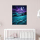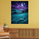 A mesmerizing bioluminescent alien desert unfolds beneath two radiant moons and swirling cosmic skies. Glowing turquoise dunes ripple across the landscape, laced with subtle electric-blue veins of light and shimmering crystalline deposits. Rich textures and cinematic lighting create a surreal yet believable environment, blending science fiction with fine art elegance. The composition draws the eye from intricate foreground details into a vast dreamlike horizon filled with mystery and depth. Perfect for modern interiors, this luxurious wall art piece adds a bold, atmospheric statement inspired by cosmic landscapes and futuristic fantasy worlds.