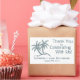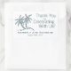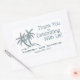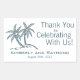 This simple but elegant wedding thank you stickers features two blue palm trees with the Bride & Groom's first names and the wedding date beneath. Along side the trees are the words "thank you for celebrating with us". This could be used for wedding party favors and/or thank you gift tags. Perfect for tropical, seaside, ocean or beach weddings.