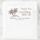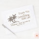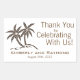 This simple but elegant wedding thank you stickers features two brown palm trees with the Bride & Groom's first names and the wedding date beneath. Along side the trees are the words "thank you for celebrating with us". This could be used for wedding party favors and/or thank you gift tags. Perfect for tropical, seaside, ocean or beach weddings.