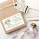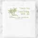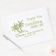This simple but elegant wedding thank you stickers features two green palm trees with the Bride & Groom's first names and the wedding date beneath. Along side the trees are the words "thank you for celebrating with us". This could be used for wedding party favors and/or thank you gift tags. Perfect for tropical, seaside, ocean or beach weddings.