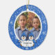 Cute twins Photo Christmas Ornaments featuring a pair of twin penguins with a blue snowflake background. Visit us at www.celebrateitornaments to view our large selection of penguin personalized ornaments and family themed ornaments.
