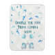 Let the confetti free! Twins are on the way--bringing double fun and joy to the twin parents-to-be. Blue confetti flies through the air with a quilted white background. Two adorable baby elephants with balloons are at the bottom. This cute and fun magnet is a lovely way to announce your twin pregnancy.